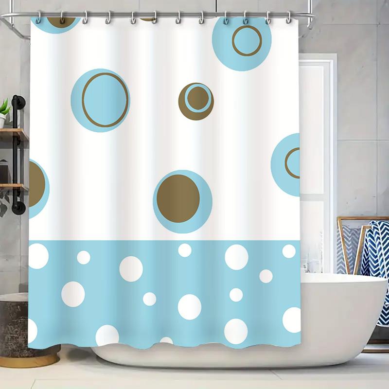 Blue Circles Polka Dot Shower Curtain for Bathroom Decor Waterproof Fabric with Rings Set