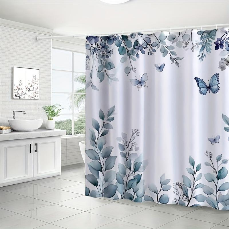 1 Elegant Floral Butterfly Shower Curtain - Polyester, Machine Washable, Artistic Bathroom Decor with Hooks, Polyester Fabric