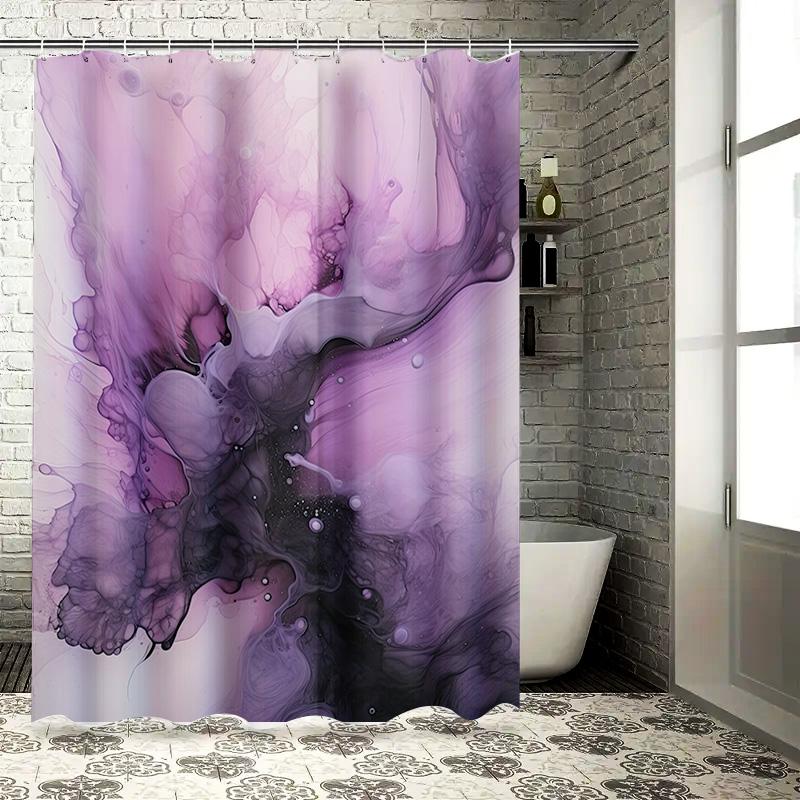 Luxurious Black Pink Swirl Shower Curtain Fabric Waterproof Home Bathroom Decor Modern Watercolor Print