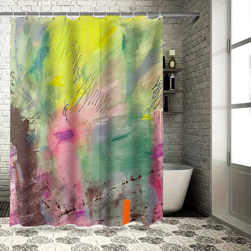 Abstract Colorful Shower Curtain with Handwritten Design Modern Bathroom Decor Home Accessories for Kids Bathrooms