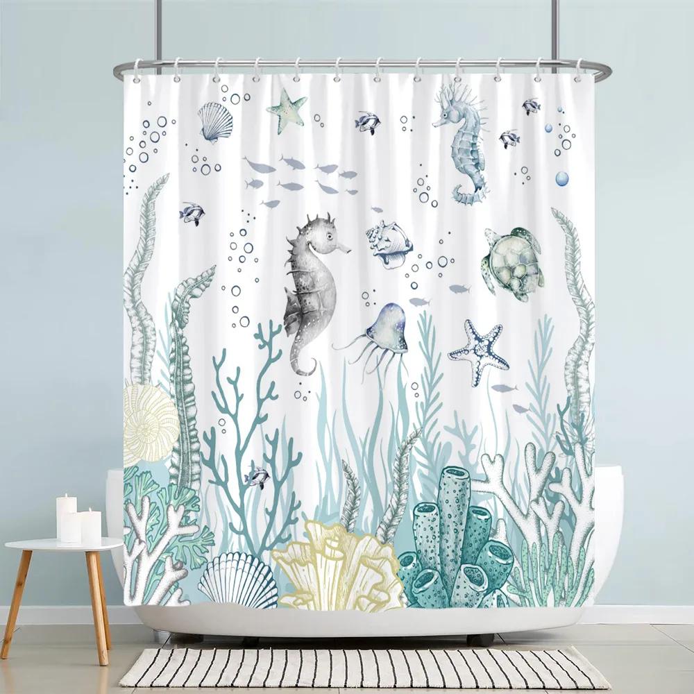 Ocean Starfish Shower Curtain Underwater Seahorse Coral Sea Turtle Shell Nautical Theme polyester Shower Curtains Bathroom Decor