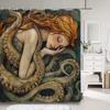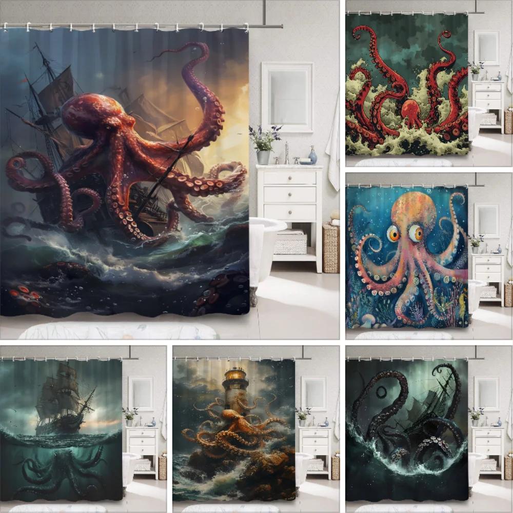Horror Sea Monster Octopus Shower Curtain Dark Sailboat Ocean Vintage Pirate Ship Wave Polyester Shower Curtains Bathroom Decor