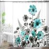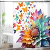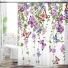 Cottage Floral Shower Curtain - Pink/Lavender Butterfly Design, Waterproof Washable Fabric, with Hooks, Modern Farmhouse Decor