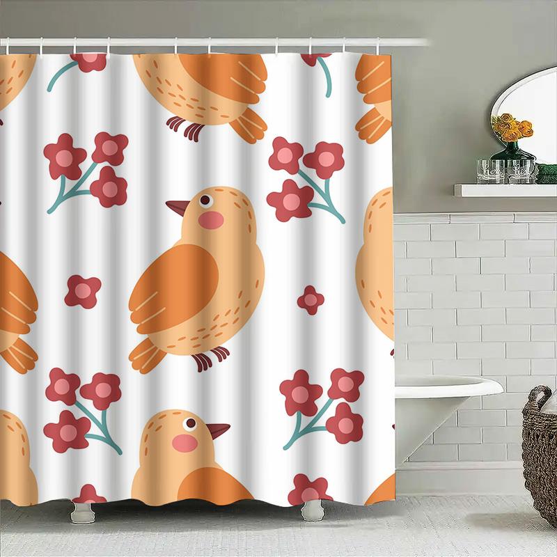 Cute Cartoon Animal Floral Shower Curtain Modern Kids Bathroom Decor Customizable Design Washable Fabric (White)