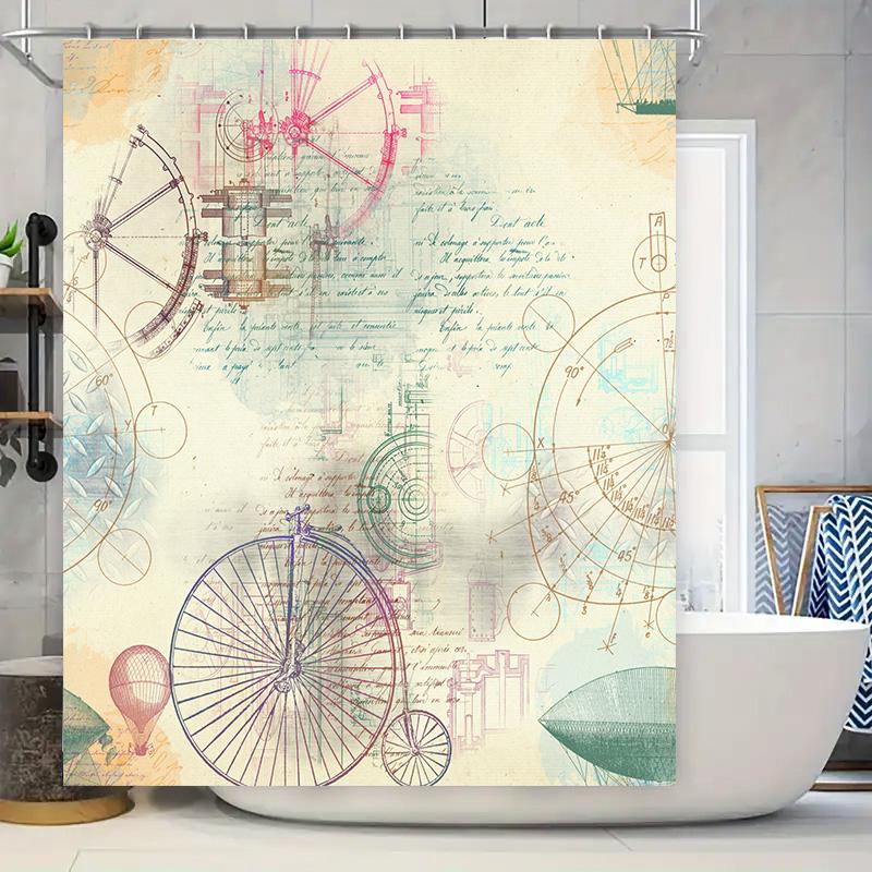 Vintage Bicycle Compass Shower Curtain Steampunk Decor Bathroom Accessories