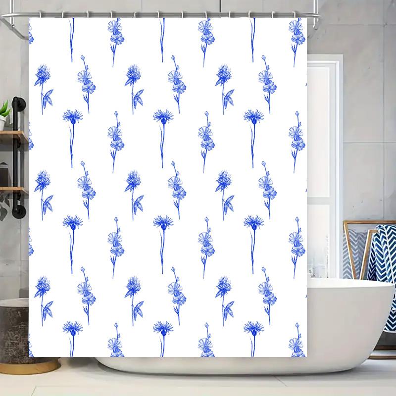 Vintage Blue Flower Printed Shower Curtain Waterproof Bathroom Decor Waterproof Backsplash Polyester Customizable Size Selection