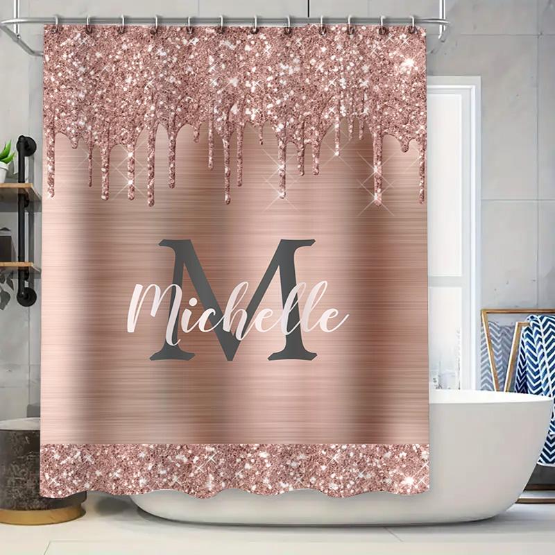 Personalized shower curtain with glitter dripping design for bathroom decor customizable name monogram available