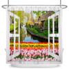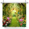 Garden Path Shower Curtain with 12 Hooks Realistic Forest Landscape Butterflies Waterproof Polyester Bathtub Bathroom Curtain