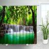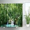 Wodospad Zasłony Łazienkowe Wiosenny Las Park Zasłona Prysznicowa Zielony Bambus Natura Krajobraz Wodoodporna Tkanina Dekoracja Domowa Wanna