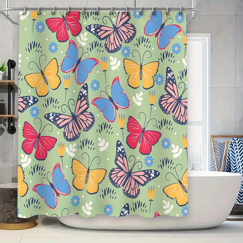 Butterfly Print Shower Curtain Waterproof Fabric Bathroom Decorations in Multiple Sizes Flower Garden Design