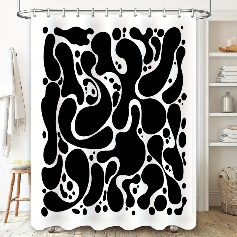 Abstract Black and White Shower Curtain for Modern Bathroom Decor - Stylish and Unique Design Waterproof Polyester Fabric