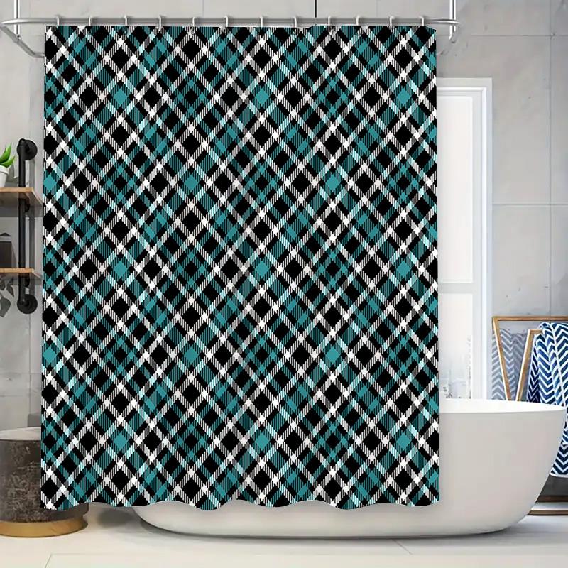Red Geometric Shower Curtain Bold Plaid Pattern Decorative Bath Fabric Waterproof Home Decoration for Bathroom Window Treatments