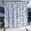 Niebieska Kwiatowa Zasłona Prysznicowa w Stylu Boho Granatowo-Biała Botaniczna Dekoracja Łazienki, Wodoodporna Poliestrowa Tkanina Vintage, Wiejska Łazienka