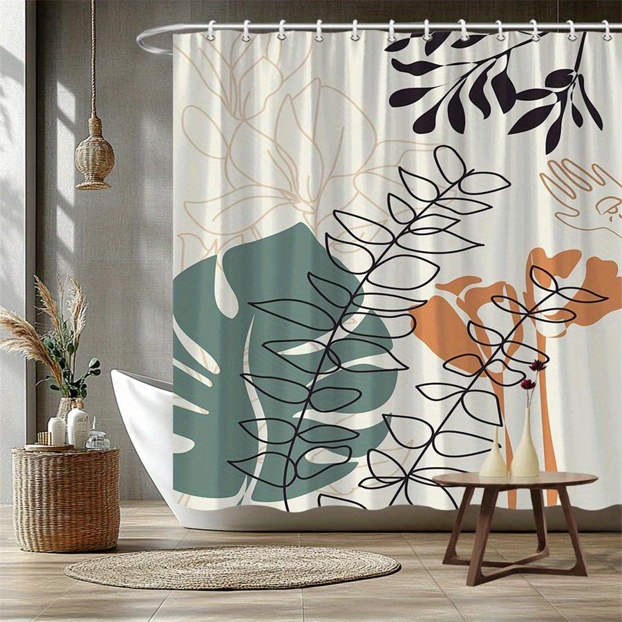 1pc Bamboo leaf pattern shower curtain, machine washable polyester fabric, suitable for bathroom décor.