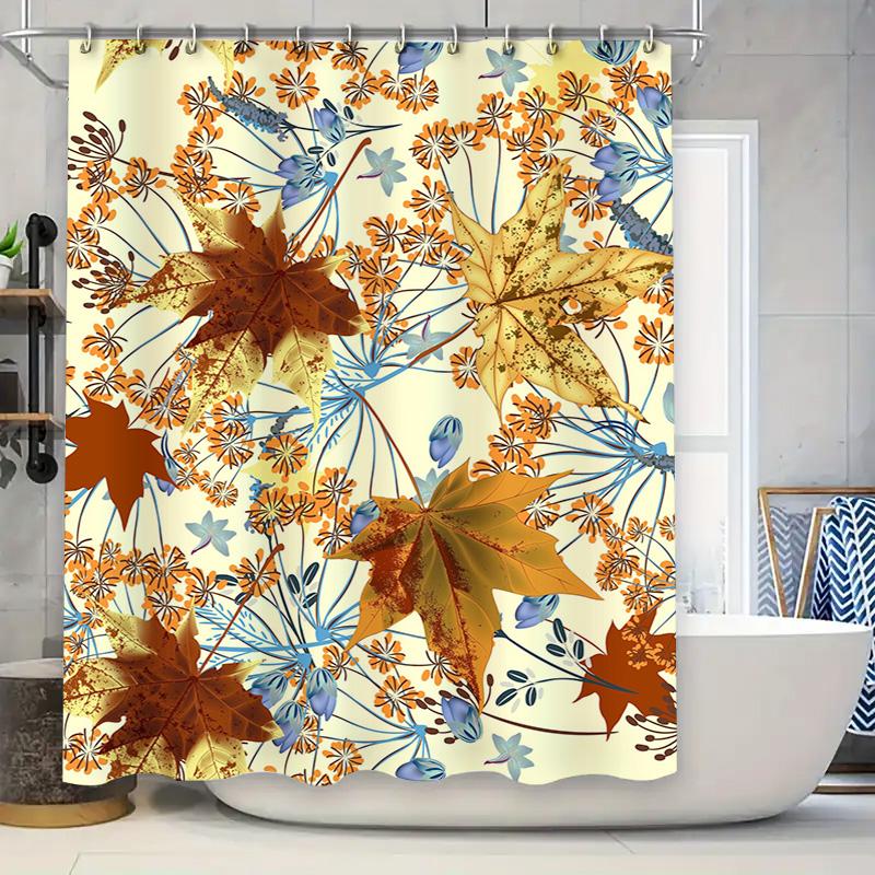 Vibrant Autumn Leaves Shower Curtain Floral Decor for Bathroom Decorations Waterproof Fabric Modern Home Decoration