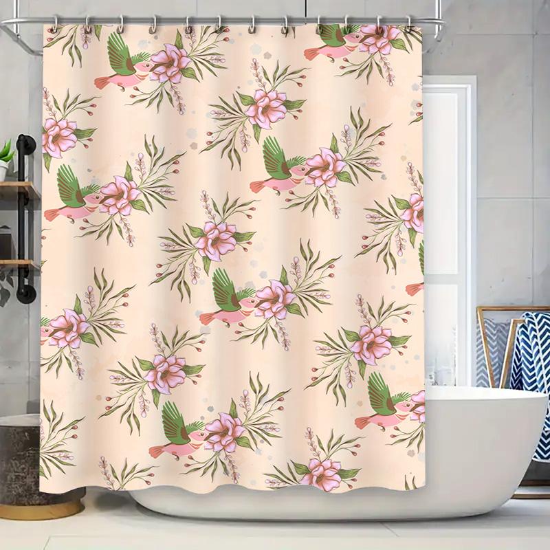 Handmade Bird Flower Printed Shower Curtain Waterproof Fabric Bathroom Decorative Hanging Rug Mat Home Decoration 180x200cm in C
