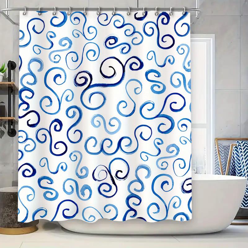 Blue Swirl Bath Curtain Decor Shower Curtain Waterproof Home Decoration Bathroom Accessories Size: Customizable (cm)