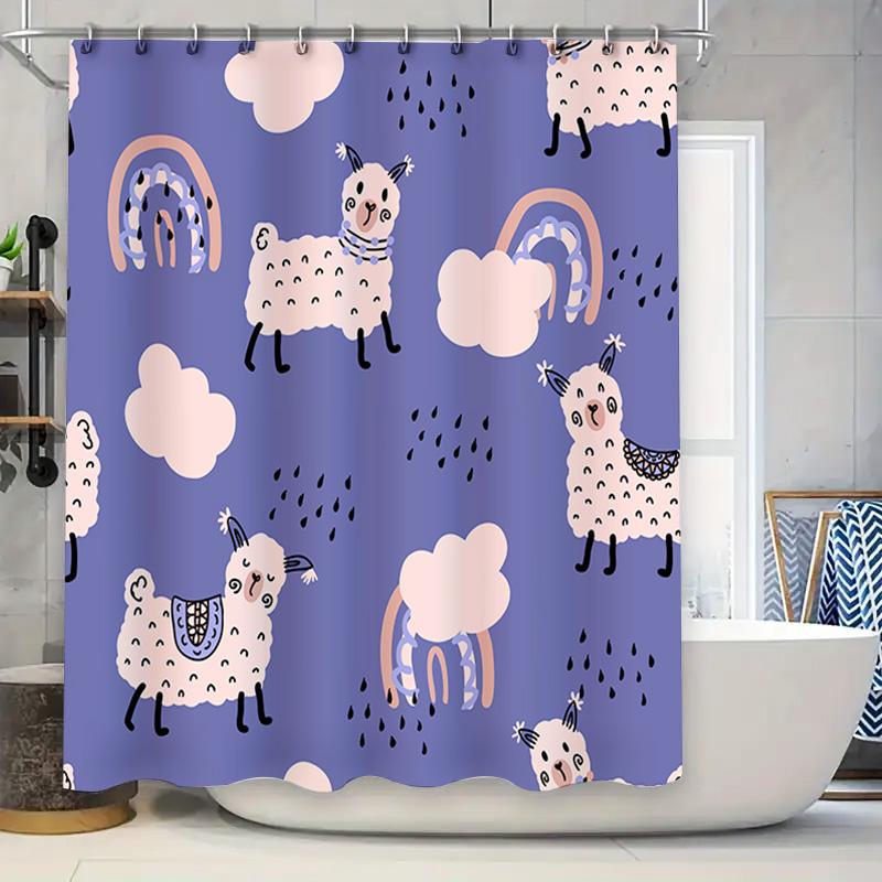 Blue Cartoon Animal Print Shower Curtain Sheep Rainbow Pattern Decor Home Bath Accessories for Kids Bathroom 3D Printed Fabric W