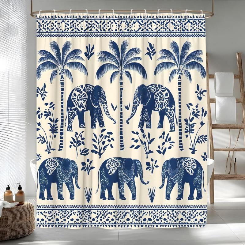 Boho Tropical Elephant Shower Curtain African Ethnic Indian Mandala Tribes Paisley Sacred Animal Unique Leaves Retro Aesthetic