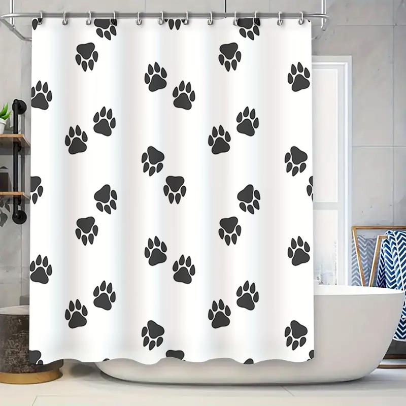 Black Paw Print Shower Curtain Home Decor Bathroom Liner for Cats Pet Lovers