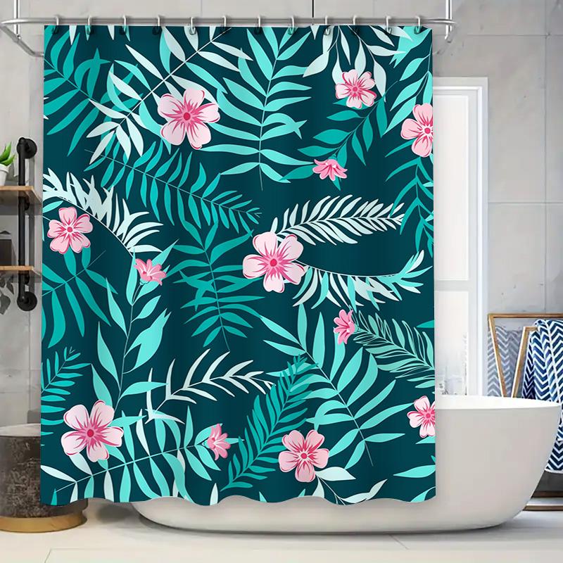 Beautiful Blue Floral Shower Curtain Waterproof Fabric for Bath Decor in Modern Bathroom Design with White Ceramic Tub Surroundi