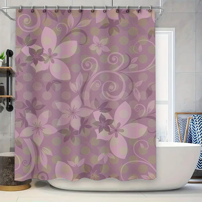 Beautiful Purple Floral Shower Curtain with Polka Dots 180 cm Long Rectangular Bath Decor for Home Decoration in Bathroom Access