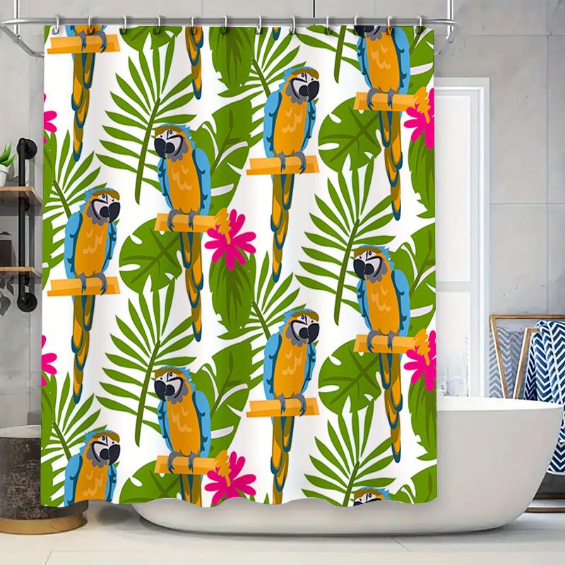 Vibrant Tropical Parrot Print Shower Curtain Waterproof Fabric Decoration for Bathroom Home Decor