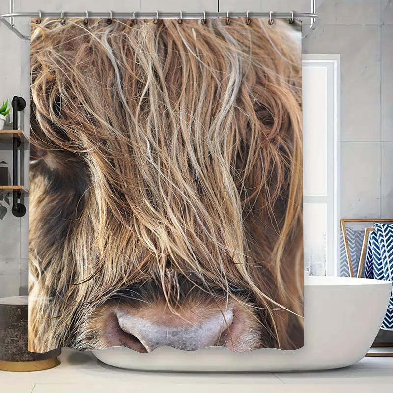 Highland Cow Animal Print Shower Curtain Waterproof Bath Mat Room Decoration Home Decorations (C029)