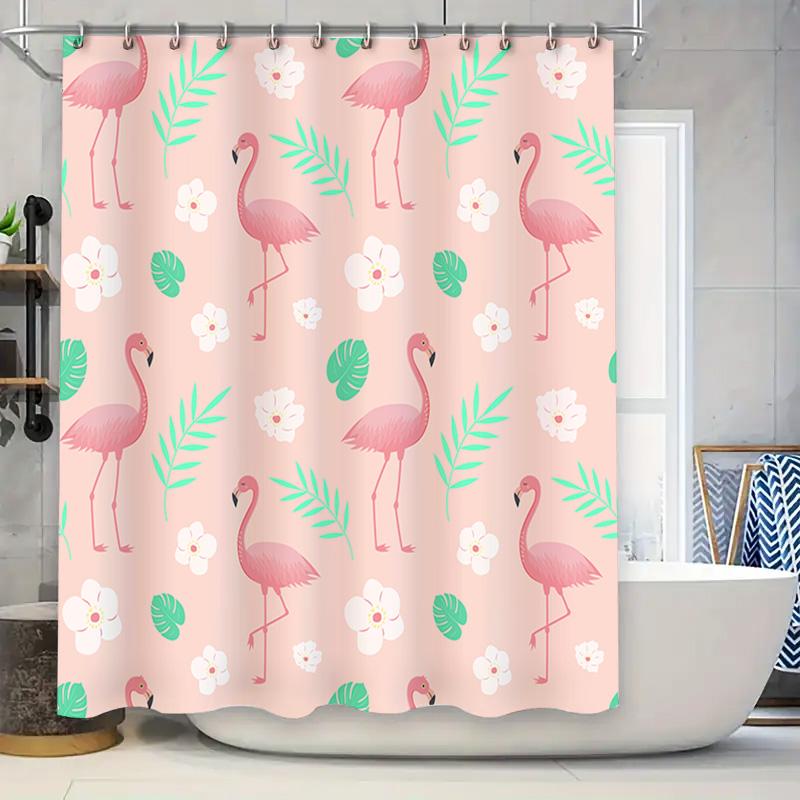 Pink Floral Shower Curtain with Birds Home Decor Bathroom Decorations Easy Installation Waterproof Fabric