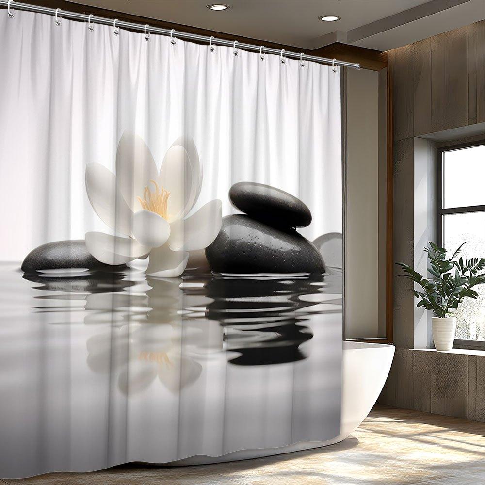Simple and elegant white shower curtain, stone flower pattern balanced, waterproof, suitable for home use bathroom curtain