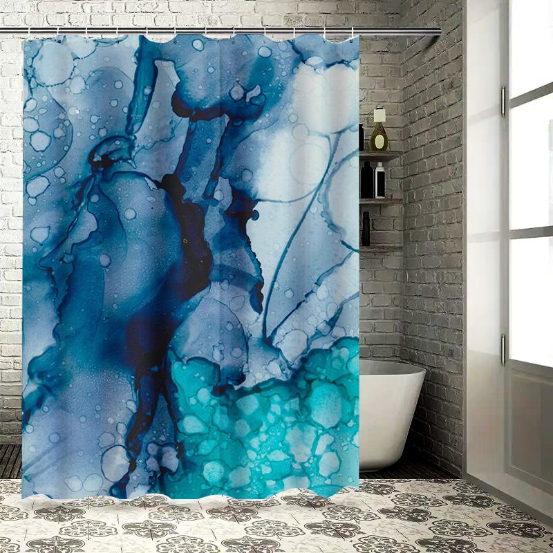 Abstract Watercolor Shower Curtain Blue Ocean Waves Design for Bathroom Decor Customizable Size from 60x72 to 84x96 (No Hardware