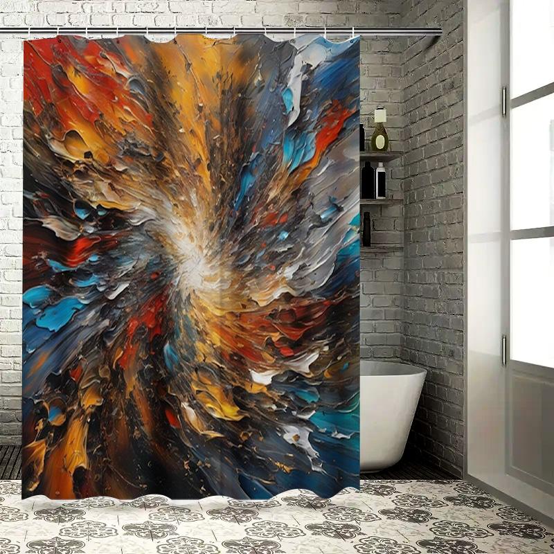 Abstract Shower Curtain Modern Bathroom Decor with Oil Painting Design Watercolor Flowers and Leaves Extra Long Size for Bathtub