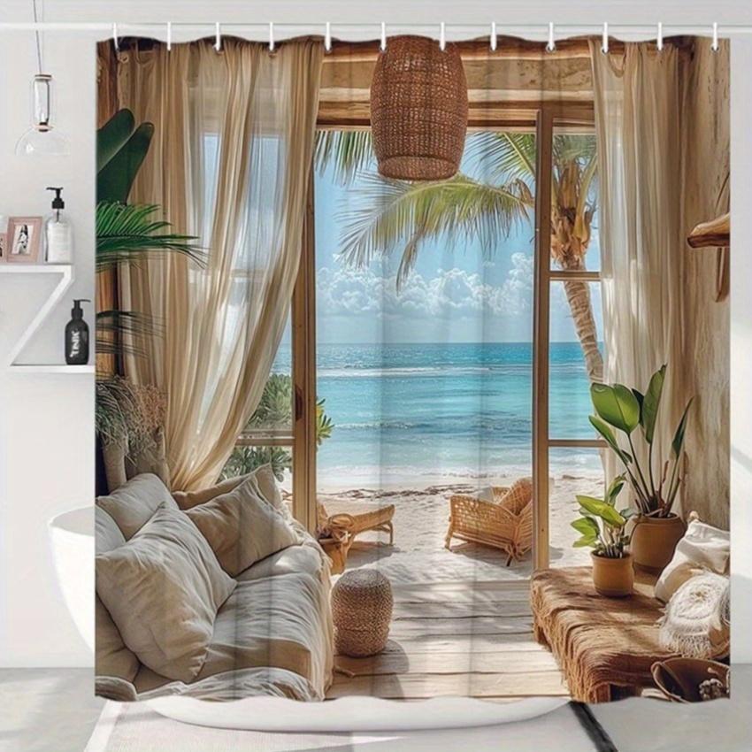 Beach Hut Paradise Shower Curtain- Multi-Style Bath Decor, Perfect for Those Who Love Coastal-Inspired and Practical Designs