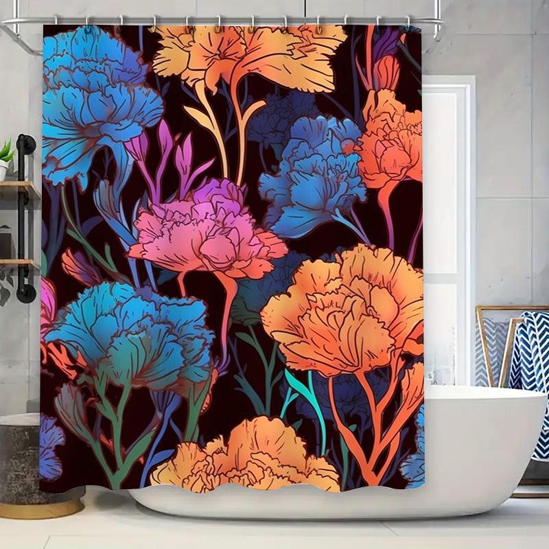 Luksusowa zasłona prysznicowa w kwiaty Wystrój łazienki z niebieskimi, różowymi i pomarańczowymi kwiatami do łazienki Wodoodporna tkanina Nowoczesne akcesoria domowe (Mu
