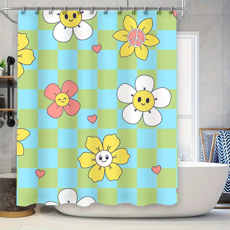 Modern Bathroom Shower Curtain with Flower Design Waterproof and Washable Fabric for Home Decor in Various Colors (Green/Yellow/