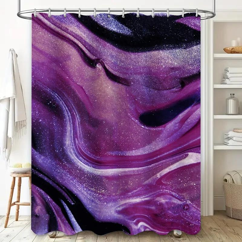 Luxury Purple Galaxy Shower Curtain Waterproof Bathroom Decor Fabric Backdrop Extra Long Size for Bathtub Spa Showers