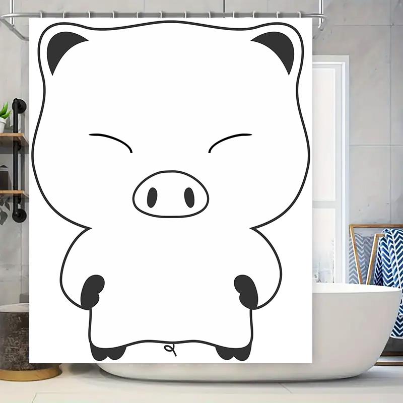 Adorable Black White Pig Design Shower Curtain Waterproof Fabric for Bathroom Decoration 72x84in