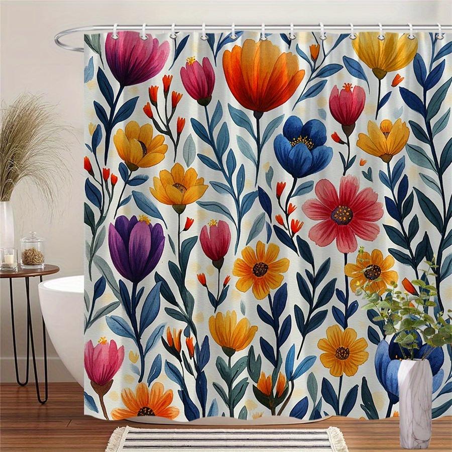 1pc vibrant hand painted watercolor floral shower curtain-delicate petals and soft background, polyester fabric machine washable