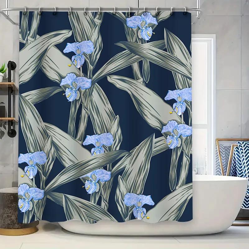 Modern Blue Floral Shower Curtain Waterproof Polyester Decorative Bath Rug Set for Bathroom Accessories