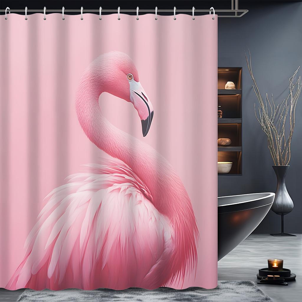 1pc Pink Theme Modern Animal Illustration Flamingo Bath Curtain Partition, Fabric Shower Curtain, Bathroom Accessories