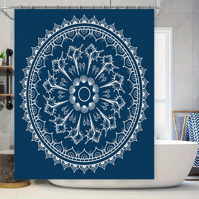 White Mandala Shower Curtain Blue Printed Bath Decorative Liner Extra Long Size (72x84) Polyester Fabric for Water Repellency Ho