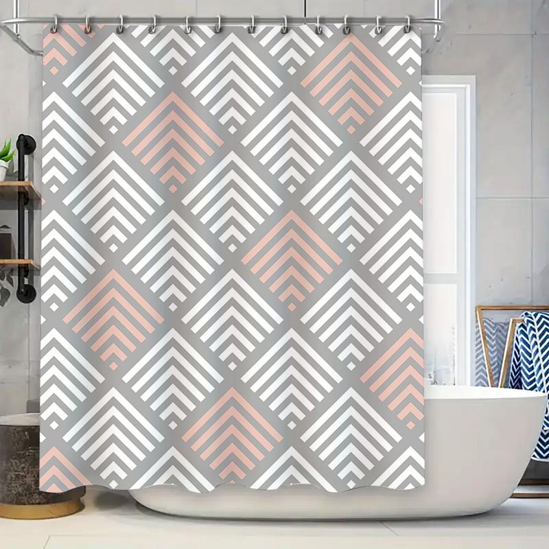 Gray and white geometric diamond shower curtain decorative bathroom decor set for modern home interiors