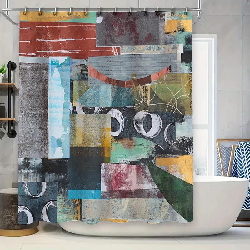 Modern Abstract Bathroom Shower Curtain Set Bold Colors Geometric Patterns Easy Installation for Home Decor