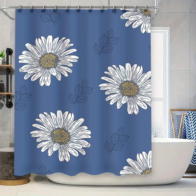 Kwiatowa Niebieska Zasłona Prysznicowa Wodoodporna Dekoracja Łazienkowa Drukowany Dywanik Łazienkowy Panel Prysznicowy