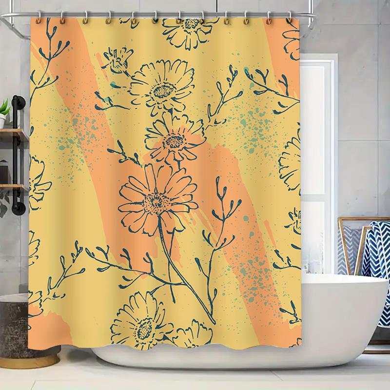 Modern Floral Shower Curtain Decorative Waterproof Washable Bathroom Wall Hanging Home Decoration for Kids Girls Bathrooms
