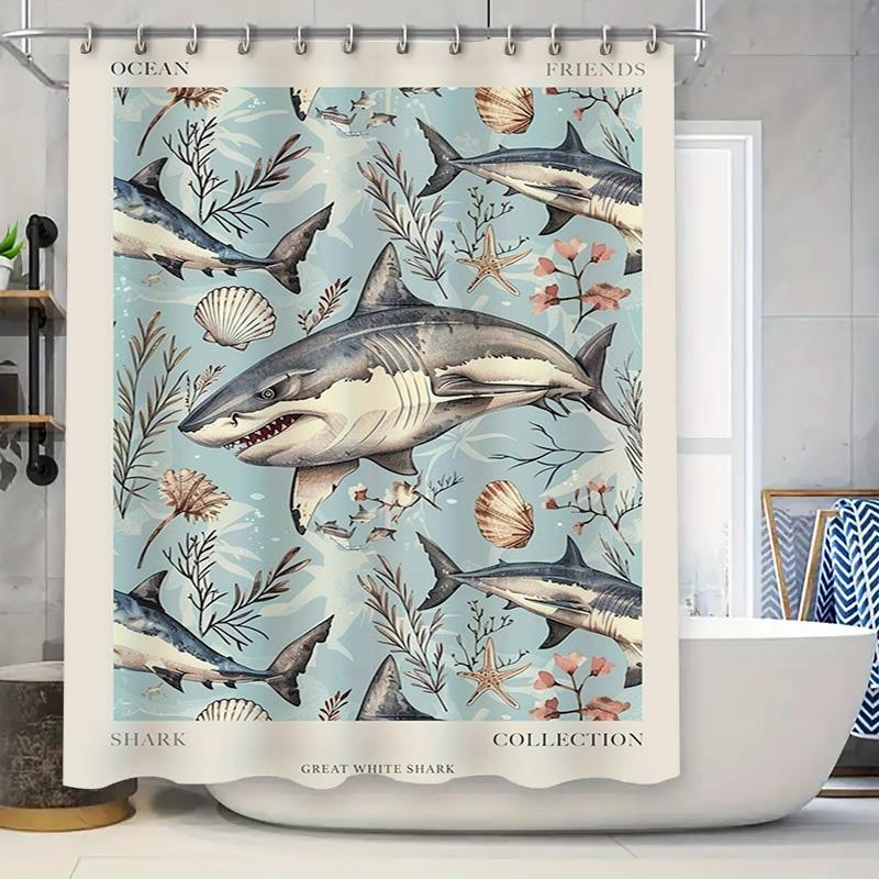 Ocean Friends Great White Shark Collection Waterproof Shower Curtain Bath Decor Blue Marine Life Theme Home Decoration 180x240cm