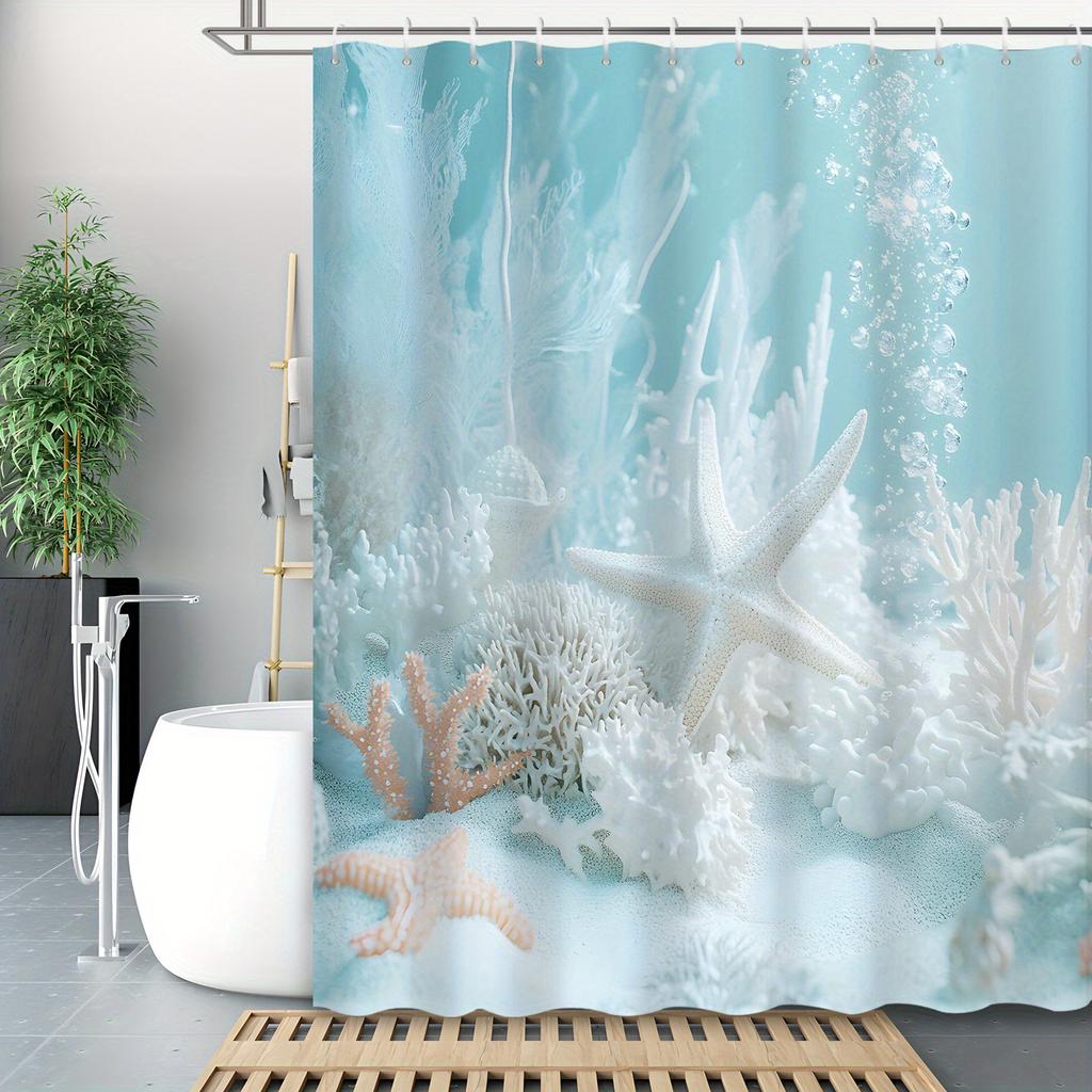 1 piece star art starfish pattern shower curtain, polyester fabric, machine washable, suitable for bathroom decoration