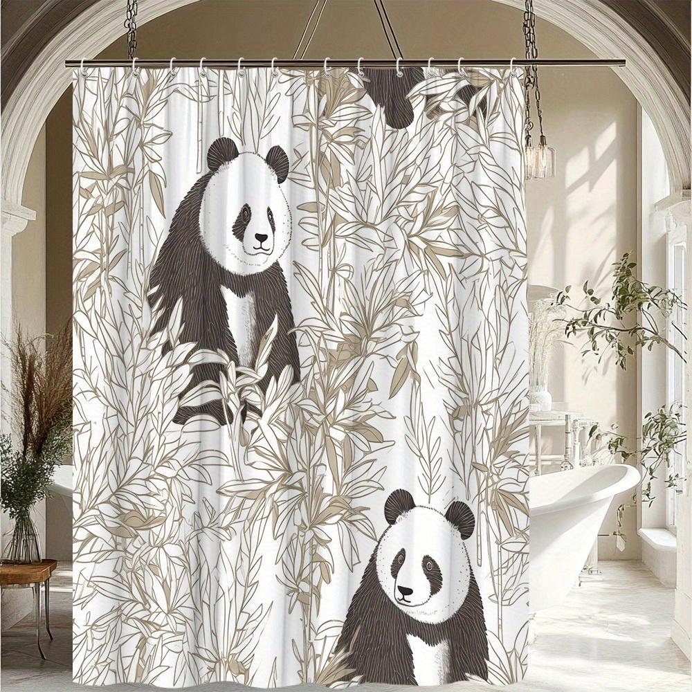 1pc Panda Theme Shower Curtain with Vivid Animal and Plant Design, Bathroom Decor, Polyester Fabric, Includes 12 Hooks,