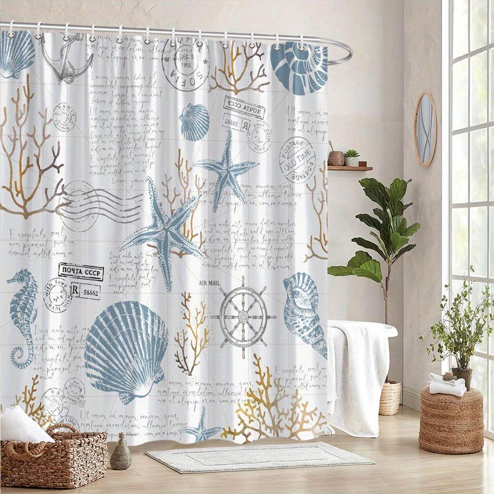 Ocean style shower curtain waterproof and moisture-proof bathroom curtain exquisite shell and starfish pattern, machine washable