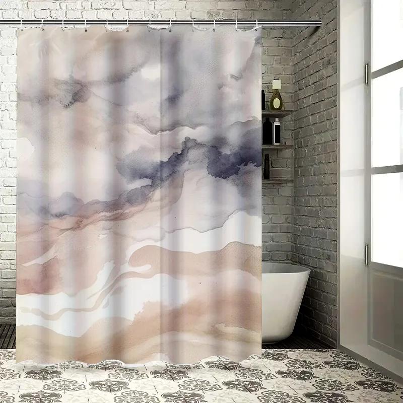 Soft Watercolor Shower Curtain for Bathroom Decor Waterproof Non-slip Printed in Neutral Colors
